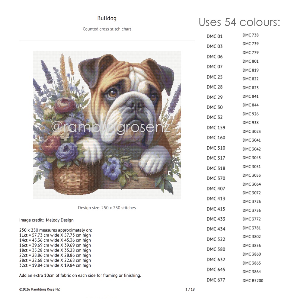 Rambling Rose NZ specialises in highly detailed, cross stitch charts that capture intricate details with photographic precision.