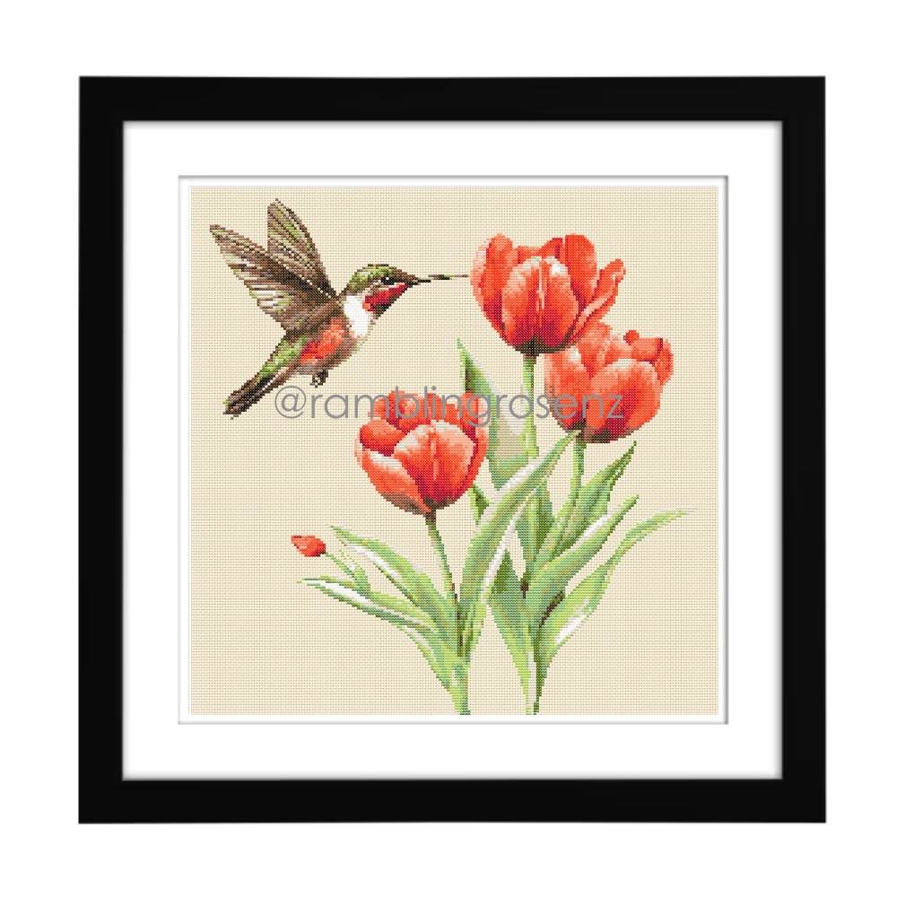 Be the first to review “Hummingbird & Tulips”