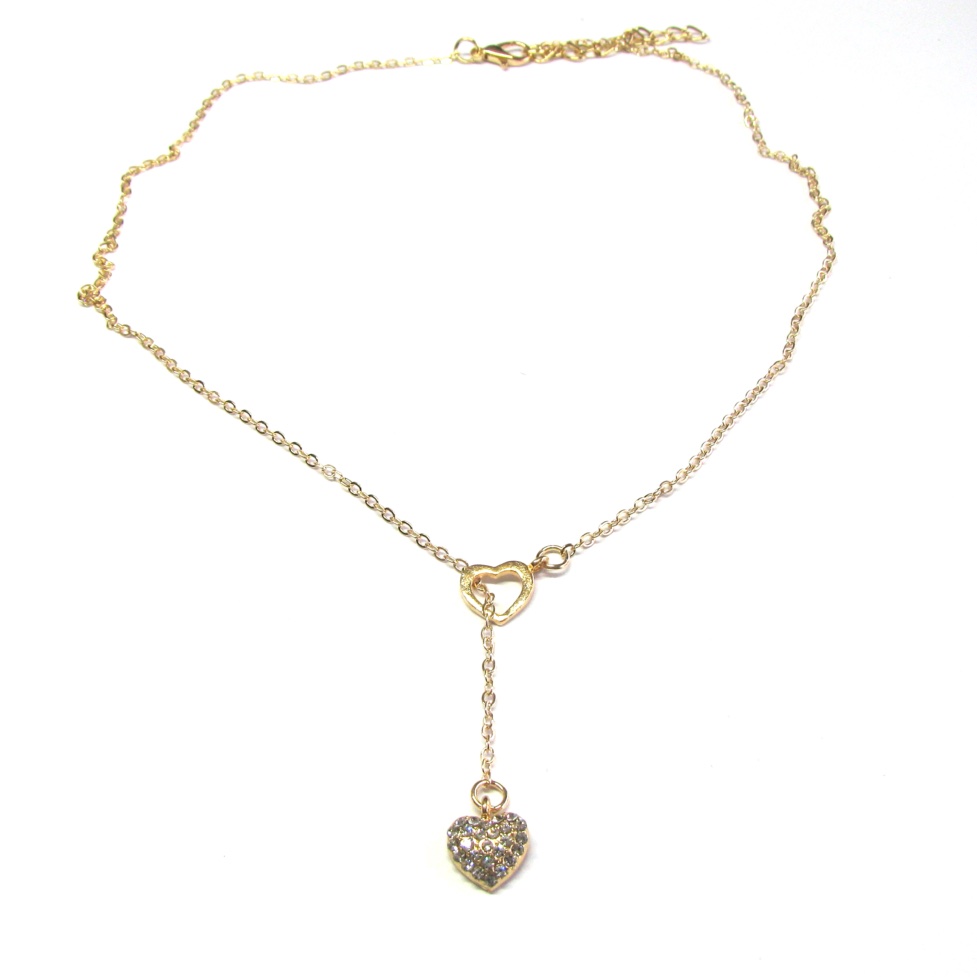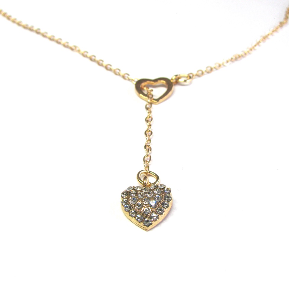 Gold-plated Y-shaped necklace with hearts.